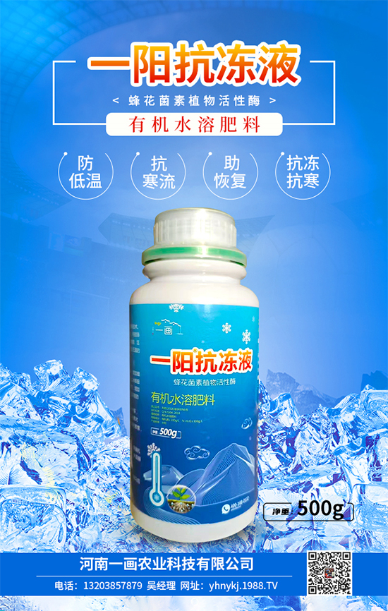 作物防凍施肥建議選擇河南一畫農(nóng)業(yè)科技有限公司【有機(jī)水溶肥料-一陽抗凍液】本品是經(jīng)微生物發(fā)酵濃縮而成的有機(jī)水溶肥料,大部分營養(yǎng)成分為菌體代謝產(chǎn)物,能有效提高作物品質(zhì),增加作物產(chǎn)量,是發(fā)展無公害綠色農(nóng)業(yè)的理想產(chǎn)品。