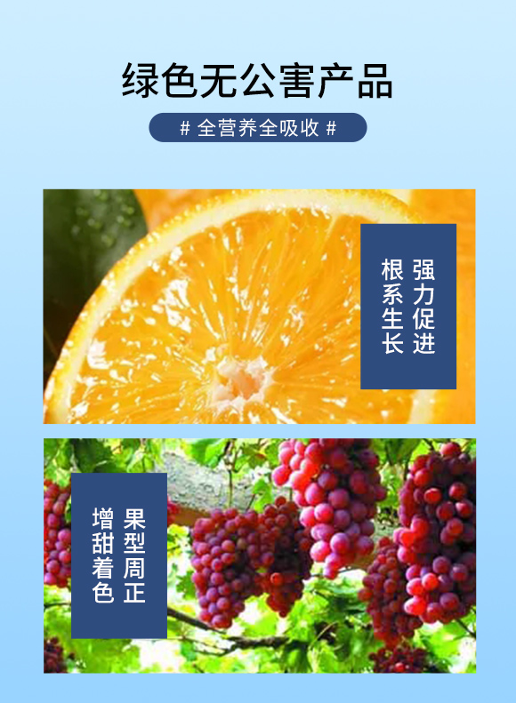 本品由微生物的代謝物產(chǎn)生的活性酶和鰲合的各種元素、枯草芽孢桿菌、殼寡糖、海藻提取物復(fù)配而成。解決作物根系差、膨果差、品質(zhì)差等問(wèn)題研發(fā)而制,不含激素。