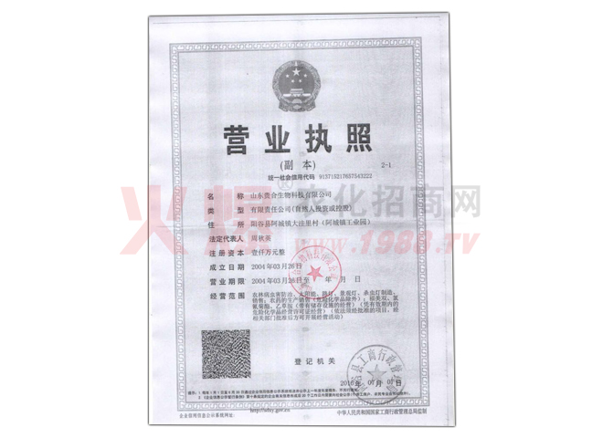 山東貴合生物科技有限公司始建于2005年7月,位于陽(yáng)谷縣阿城鎮(zhèn)工業(yè)園,占地面積11988平方 米,房屋建筑面積3782平方米。公司注冊(cè)資金1000萬(wàn)元,為有限責(zé)任公司,經(jīng)營(yíng)范圍為生產(chǎn)、 銷售農(nóng)藥,年設(shè)計(jì)生產(chǎn)能力1000噸。主要從事以殺蟲(chóng)、殺菌劑為主的農(nóng)化產(chǎn)品的研發(fā)、生產(chǎn)與 銷售。