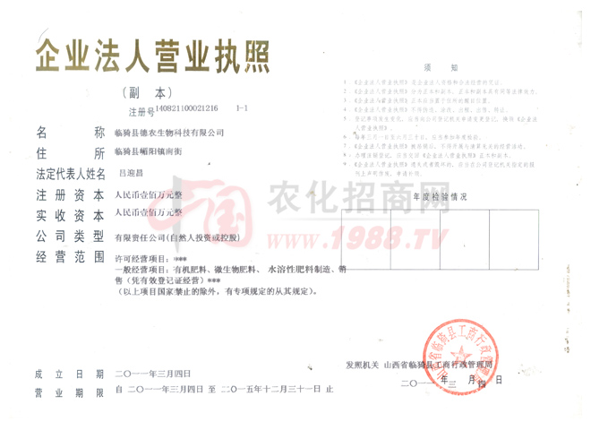 山西臨猗德農(nóng)生物科技有限公司是國(guó)家水溶肥定點(diǎn)生產(chǎn)企業(yè)、國(guó)家高新技術(shù)培育企業(yè)“誠(chéng)于內(nèi),信于外”,公司秉持“德為做人之根,農(nóng)為生養(yǎng)之父”的理念,做為一家新生的、富有創(chuàng)造力的現(xiàn)代農(nóng)化生產(chǎn)企業(yè),公司聚集了一批潮氣蓬勃、敢為天下的年輕營(yíng)銷團(tuán)隊(duì),德農(nóng)人誠(chéng)盼各界有識(shí)之士加盟,攜手奮進(jìn),為減少農(nóng)藥使用、保護(hù)環(huán)境、為農(nóng)業(yè)增產(chǎn)、農(nóng)民增收貢獻(xiàn)力量,共同開創(chuàng)燦爛輝煌的明天。