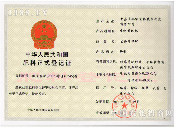 目前主要開發(fā)的系列產(chǎn)品有:“天緣活菌母露Ⅰ型(多種組合配方:有機物料發(fā)酵劑專用菌種)”、“天緣活菌母露Ⅱ型(生物沖施肥、葉面噴施肥)”、“眾和生物有機肥”三大系列十多種產(chǎn)品。對改良土壤、修復(fù)生態(tài)、還原生態(tài)、提高作物品質(zhì)、提高土壤的綜合地力、提高作物產(chǎn)量、降解化學(xué)殘留、緩解連作障礙效果顯著。產(chǎn)品于2005年國家正式批準(zhǔn)登記。2003年被審定為“青島高新技術(shù)產(chǎn)品”和“青島市高科技企業(yè)”。