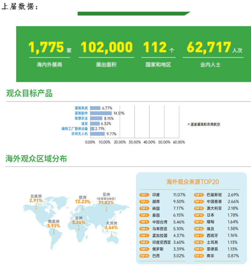 2024上海農(nóng)業(yè)科技展涵蓋灌溉、溫室、農(nóng)用航空、種業(yè)、智慧農(nóng)機(jī),3月13-15日在國家會(huì)展中心(上海),2024上海農(nóng)業(yè)科技展參展規(guī)模有多大?2024上海農(nóng)業(yè)科技展往屆數(shù)據(jù)如何?一起來了解下吧!