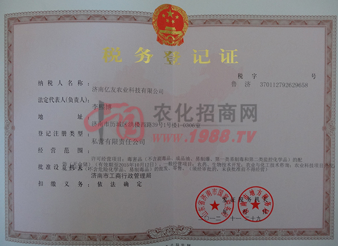 證書名稱:稅務(wù)登記證 發(fā)證機(jī)構(gòu):山東省濟(jì)南市國家稅務(wù)局 濟(jì)南市地方稅務(wù)局